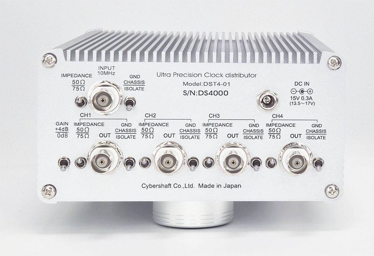 - 弊社のすべてのOCXOグレードの高精度10MHz信号を、ほぼ特性を損なわずに4分配できる信号分配器です。